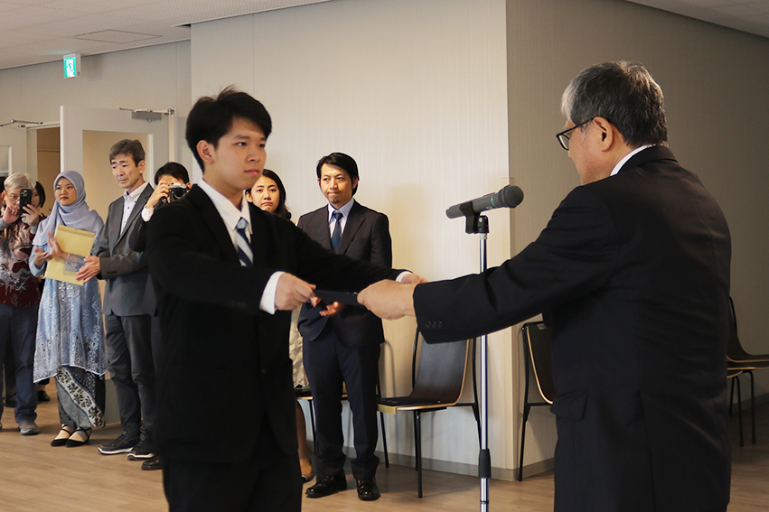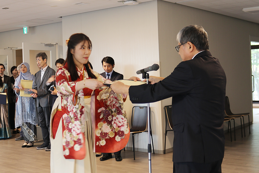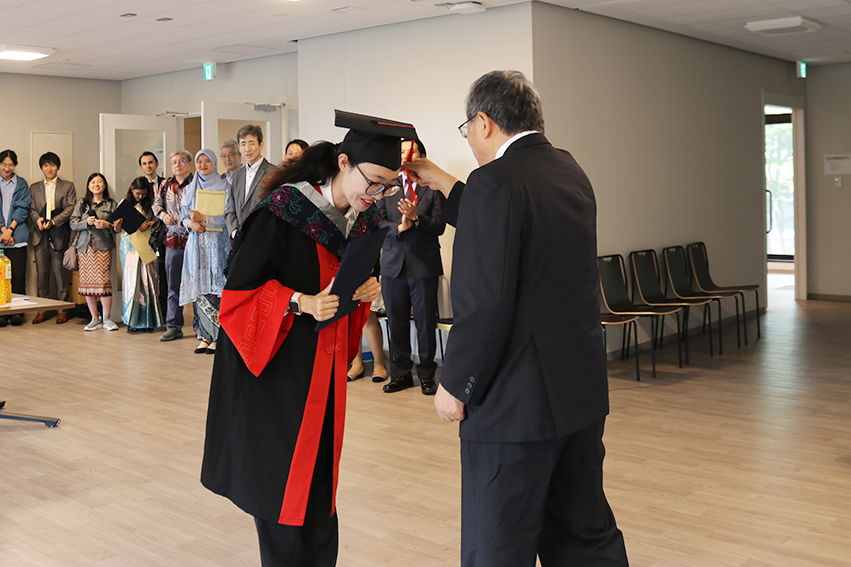 9月25日、北青葉山厚生会館にて学位記交付式を執り行いました。本年度の卒業生・修了生は46名で、そのうち32名が式に参加しました。式では、学部生・大学院生の代表者へ都築暢夫研究科長から学位記が授与され、その後、研究科長から祝辞が贈られました。会場は終始あたたかな雰囲気に包まれていました。